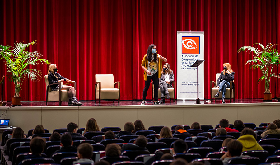 Marta Tena, Cristina Cons i Patrícia Pallarès, són les tres joves influencers que es troben a la seva primera etapa professional i van integrar la segona taula de la jornada, oferint els seus testimonis sobre altres qüestions que afecten els adolescents, tals com els TCA (Trastorns de Conducta Alimentària) o els efectes i conseqüències dels continguts audiovisuals que tenim a l’abast. Les tres joves van oferir models a seguir en positiu i van animar als adolescents participants a treure partit dels avantatges de les xarxes, sense caure en la dependència i els mals usos.
