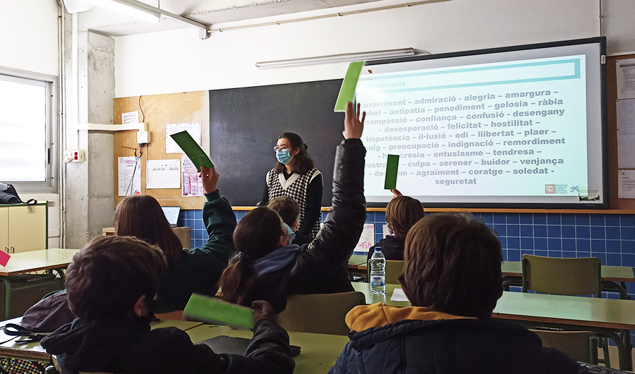 Els tallers d’una hora “Ciberbullying: assetjador, víctima i espectador” son uns espais de reflexió per parlar amb els i les adolescents que comencen amb les xarxes socials sobre els riscos que aquestes eines comporten i com fer-ne un bon ús. A més a més, l’alumnat va poder explorar els rols de la víctima, l’espectador i l’assetjador amb dinàmiques participatives.