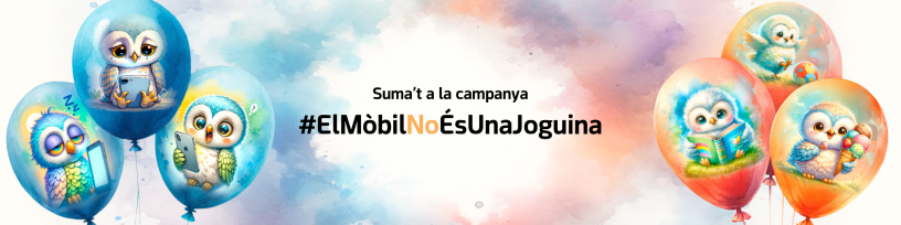 Si et vols sumar a la campanya, comparteix el hashtag #ElMòbilNoÉsUnaJoguina a les xarxes socials i etiqueta’ns a Instagram, X i LinkedIn!