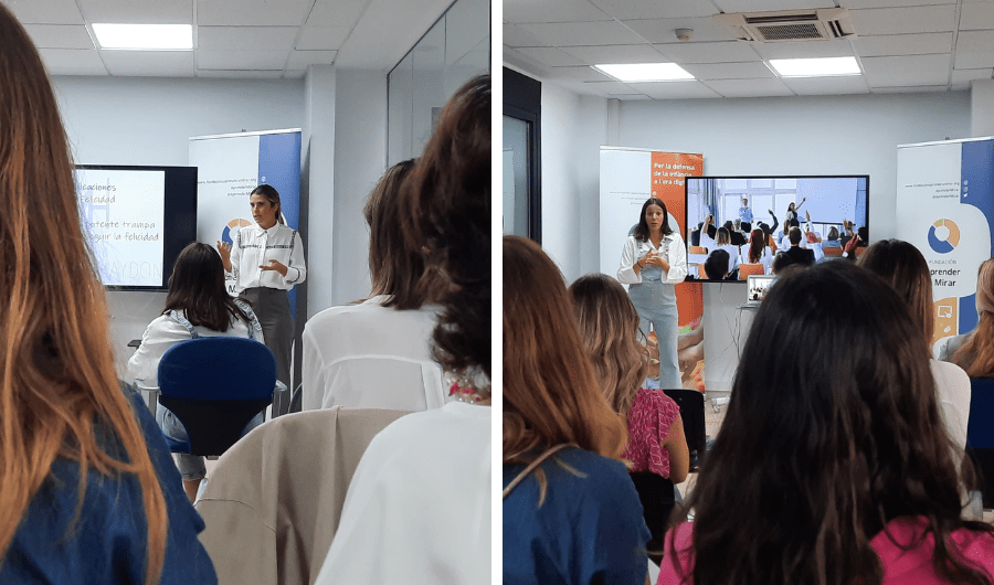 A la segona jornada es va comptar amb dues psicòlogues. Per una banda, la Mercedes Haydon va parlar sobre educació afectivosexual a l’era de les xarxes. Per l’altra, la Patricia Gassó va organitzar una dinàmica grupal per exposar els reptes als quals ens enfrontem amb l’efecte de les pantalles a la infància.