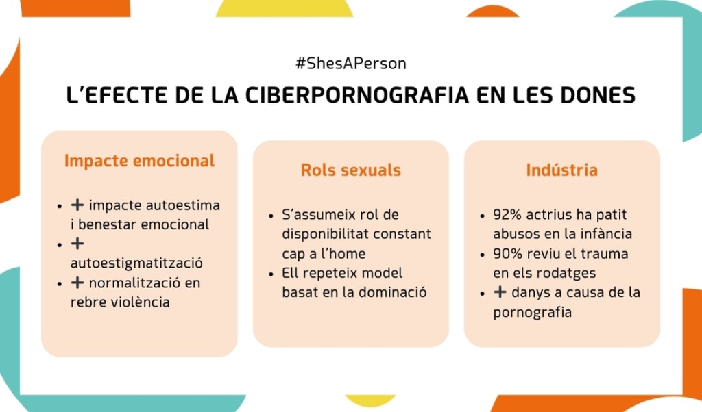 Combatre la violència masclista i detectar clixés de models disruptors a les pantalles són els objectius principals amb els quals va néixer la campanya #ShesAPerson. Per això, es duen a terme accions de conscienciació per a reivindicar la protecció de les dones i menors davant de l’exposició a la pornografia i a representacions sexualitzades que poden distorsionar la seva visió del món.