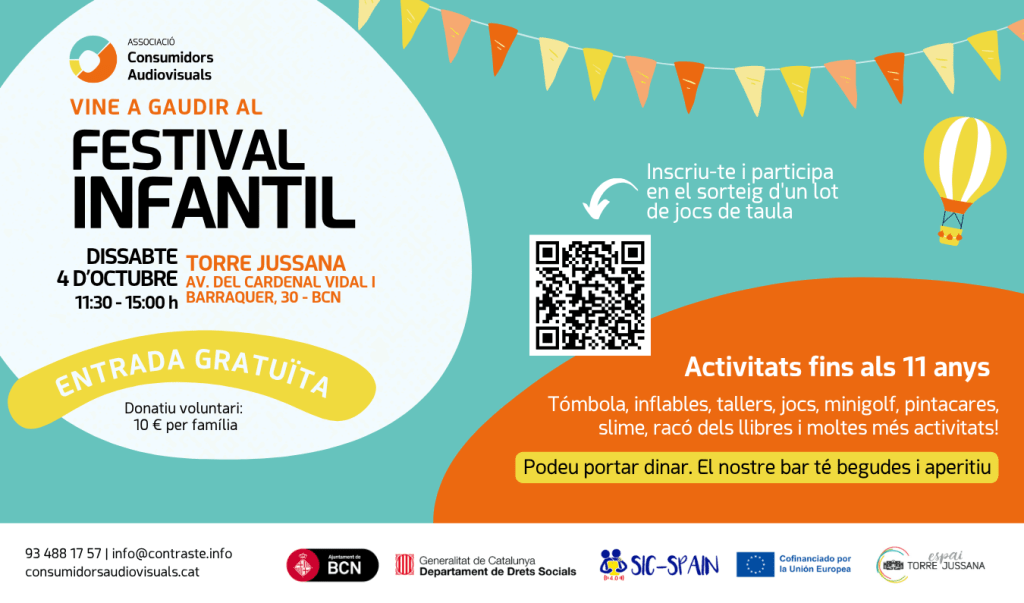 El 4 d’octubre de 2025 va tenir lloc la 29a edició del Festival Infantil de l’Associació de Consumidors de Mitjans Audiovisuals de Catalunya a Torre Jussana, una jornada sense pantalles per als nens i nenes.